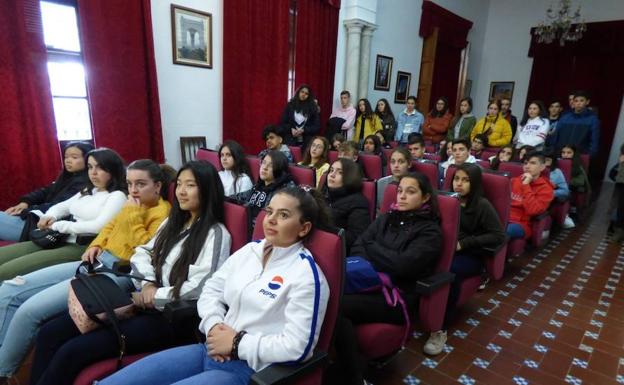 Los alumnos del IES Llerena y Mill Hill Country School son recibidos en el Ayuntamiento