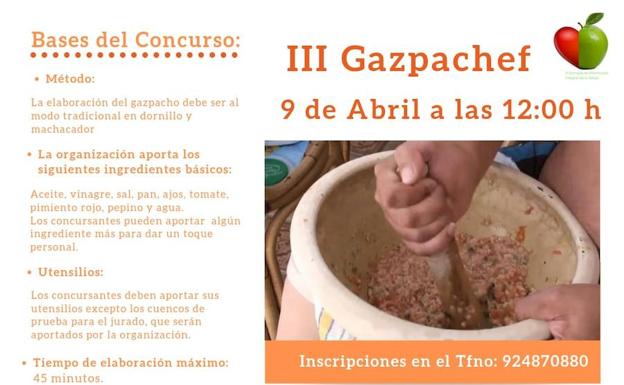 Desde la organización informan que aportarán el aceita, vinagre, sal, pan ajos, tomate, pimiento rojo, pepino y agua y los concursantes podrán aportar algún ingrediente personal para dar su toque persona.