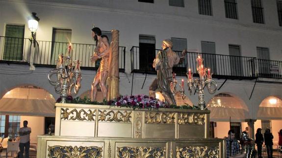 Las imágenes recorrieron las calles de Llerena hasta las 23,15 horas aproximadamente. El Señor atado a la columna y la Virgen de los Pobres, estilo candelero, fueron acompañado por los nazarenos, penitentes y llerenenses que se acercaron a ver los pasos. La túnica de los nazarenos es morada en su totalidad. La banda que amenizó la procesión fue la de Azuaga.