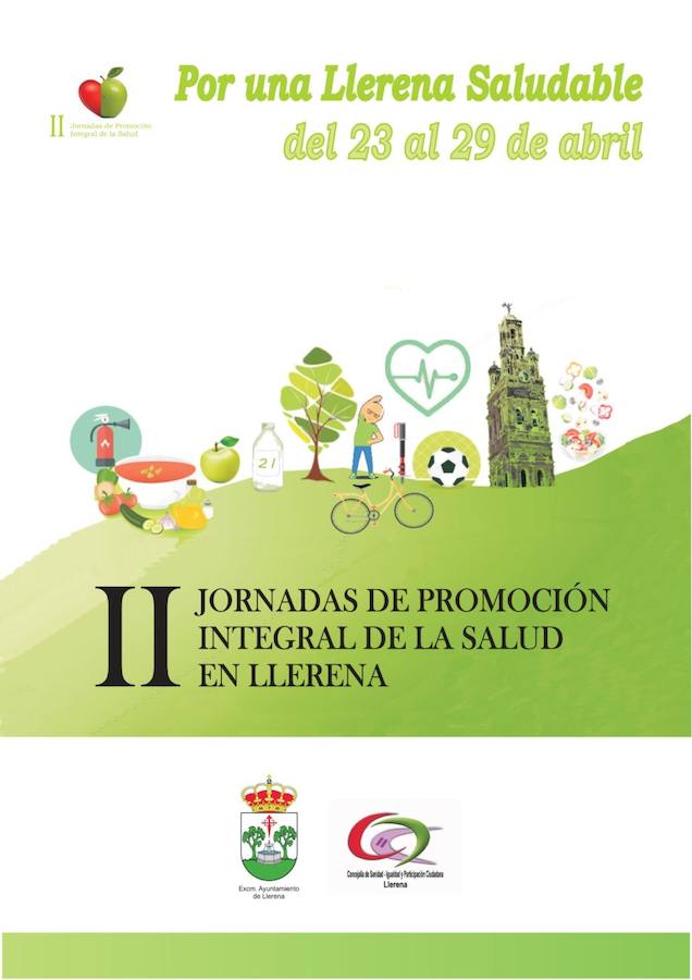 II Jornadas de Promoción Integral de la Salud en Llerena. Bajo el lema Por una Llerena saludable se han programado una serie de actividades desde la concejalía de Sanidad, Igualdad y Participación Ciudadana. Las Jornadas darán comienzo el 23 de abril y se clausuran el 29 de abril con la Ruta del Rey Jayón.