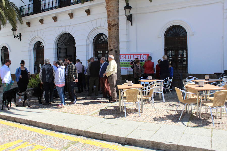 Un grupo de personas se reunieron en la puerta del Ayuntamiento de Llerena a favor de unas pensiones dignas. De acuerdo con la plataforma estatal el pasado sábado se convocó una concentración en sesión extraordinaria. Se votó si se convocaba para hoy lunes y los asistentes por unanimidad acordaron que sí para seguir con una rutina. Los llerenenses se reúnen el primer lunes de cada mes.