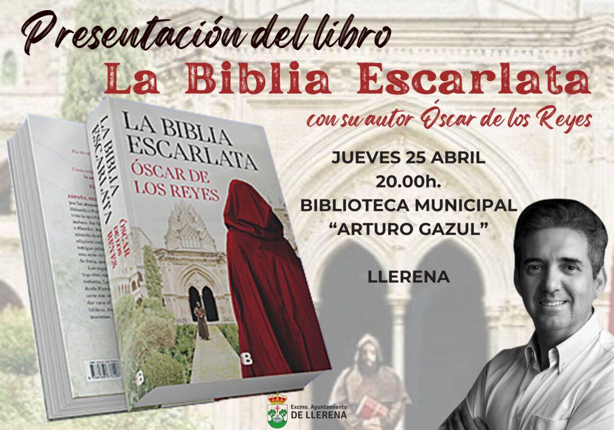 La biblioteca municipal Arturo Gazul acoge este jueves, 25 de abril, a las 20.00 la presentación del libro 'La Biblia Escarlata'. En este acto estará presente su autor, Óscar de los Reyes y quien lo desee podrá adquirir ejemplares de esta novela.