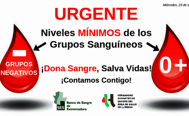 El Banco de Sangre de Extremadura necesita donaciones de sangre en grupos negativos y 0+